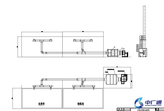 排風煙囪煙囪采用拉索式固定形式,φ=600mm,數量1根。煙囪離屋頂平面高3米。煙囪設置檢測取樣口、爬梯。(1套煙囪)
